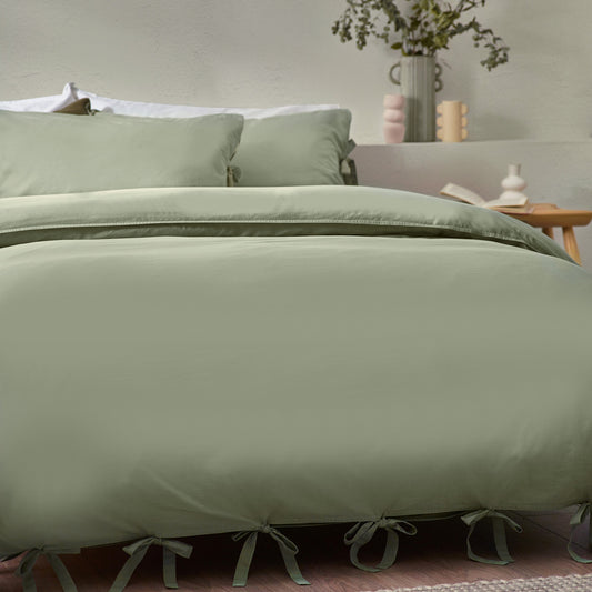 Mallow Bow Tie Duvet Cover Set Soft Sage
