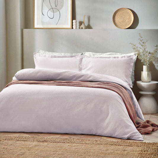 Waffle Textured 100% Cotton Duvet Cover Set Blush