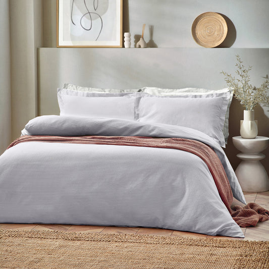 Waffle Textured 100% Cotton Duvet Cover Set Silver