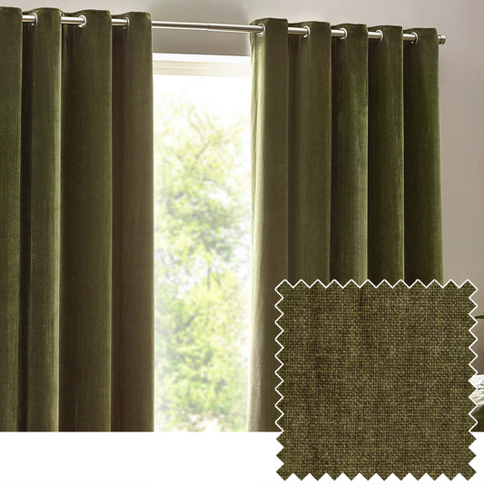 Heavy Chenille Velvet Room Darkening Eyelet Curtains Olive