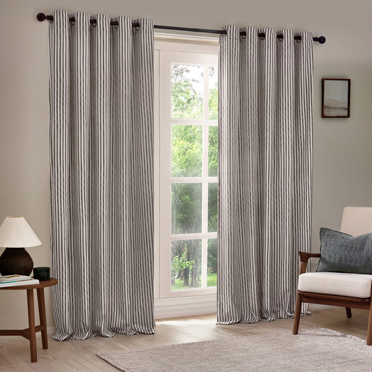 Hebden Striped 100% Cotton Lined Eyelet Curtains Grey